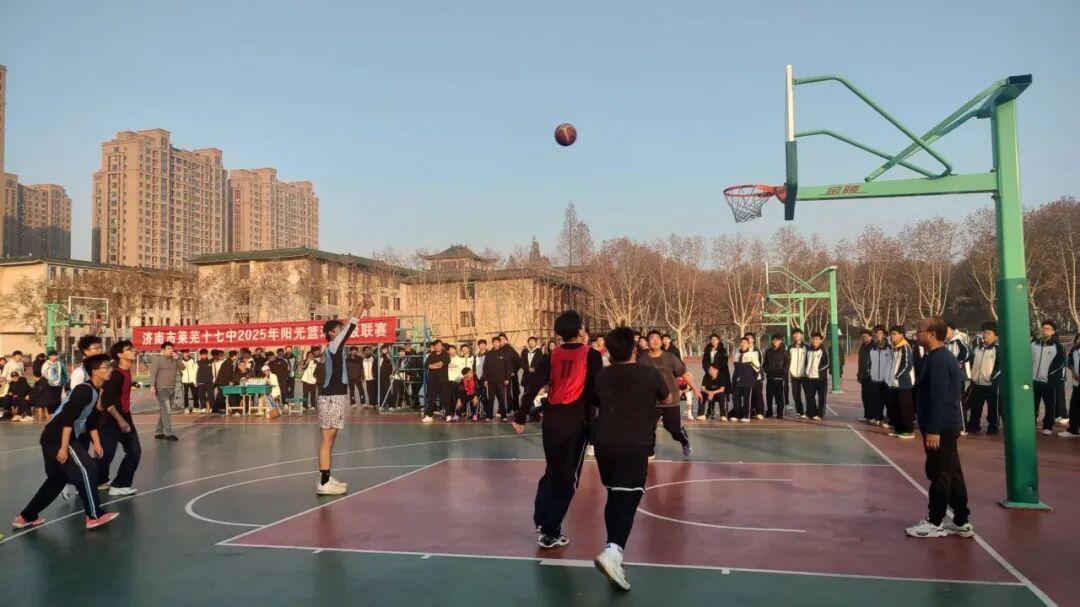 鲁网12月11日讯天气晴朗,阳光明媚,球场上奔跑声、呐喊声与欢呼声交织。近日,济南市莱芜十七中阳光篮球班级联赛决赛在校篮球场热烈举行,高一和高二的两支男子篮球队展开了对抗赛,一场充满友谊与竞技精神的比赛在周末校园上演。