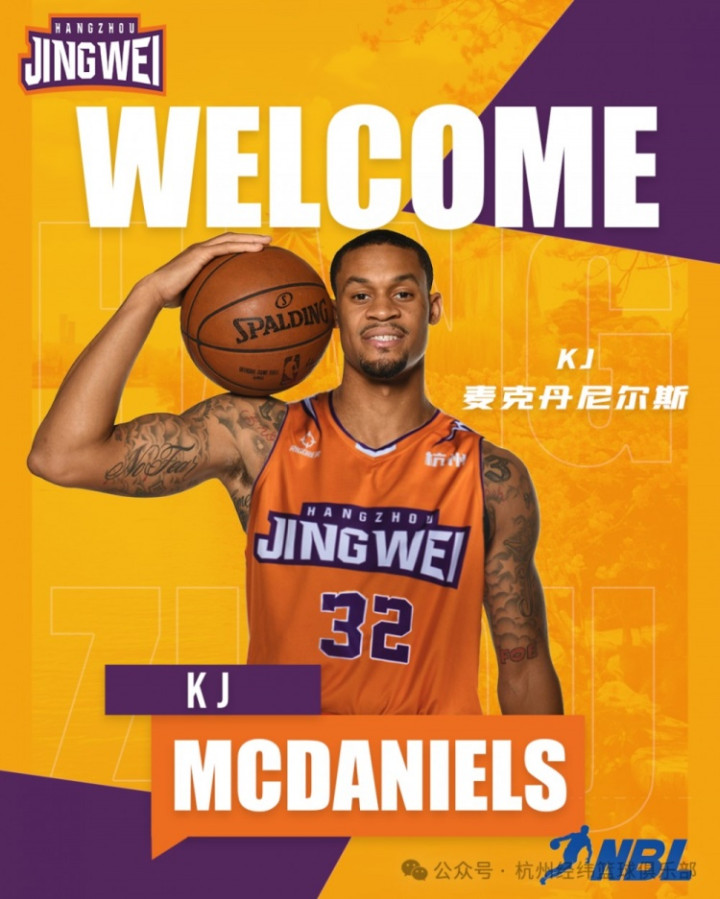 杭州经纬正式与外籍运动员K.J.麦克丹尼尔斯完成签约,新赛季他将身穿32号球衣代表球队征战2025-2026赛季NBL联赛。