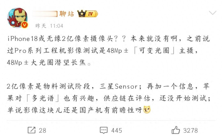 数码圈备受关注的iPhone18 Pro系列,近日迎来核心配置爆料。知名博主“数码闲聊站”发文澄清,此前流传的“搭载2亿像素摄像头”说法并不属实,直言“本来就没有”。